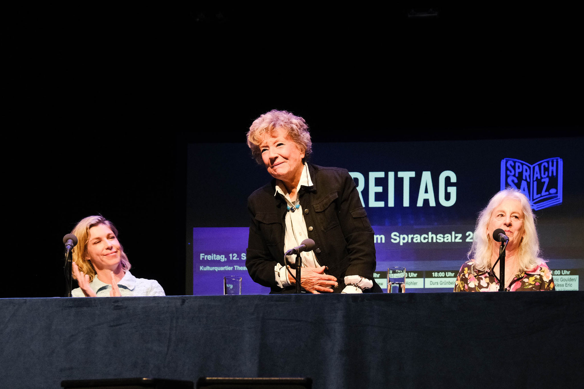 Der Kölner Autor Yannic Han Biao Federer begeisterte und berührte das Publikum mit seinem Roman «Tao», einer Familiengeschichte von Hongkong über Indonesien bis nach Deutschland. Dass Erinnern und Trauern eine Form von Liebe ist, spürte das Publikum in Federers Roman über seinen toten Sohn Gustav Tian Ming «Für immer sehe ich dich wieder» eindringlich. Nach ihm las der in Berlin lebende russische Autor Viktor Jerofejew aus «Der große Gopnik», dem neuesten, von autofiktionalen Elementen durchzogenem Roman des Exil-Autors. In der Lesung von Franz Hohler verflossen die Grenzen zwischen spielerisch und ernsthaft, zwischen Alltagsbeobachtungen und tiefgreifenden Fragen. Der Schweizer Künstler trug sein Gedicht vom Weltuntergang vor, der mit einem harmlosen Tierchen beginnt: «Am Anfang wird auf einer ziemlich kleinen Insel im südlichen Pazifik ein Käfer verschwinden.» Der deutsche Dichter Durs Grünbein begibt sich in seiner Arbeit als «melancholischer Aufklärer und Restromantiker» (Deutschlandfunk) auf die Spur der Frage, was es heißt, ein Mensch zu sein. Bei SPRACHSALZ las er aus «Der Komet» und aus seinem vielfach preisgekrönten lyrischen Werk.