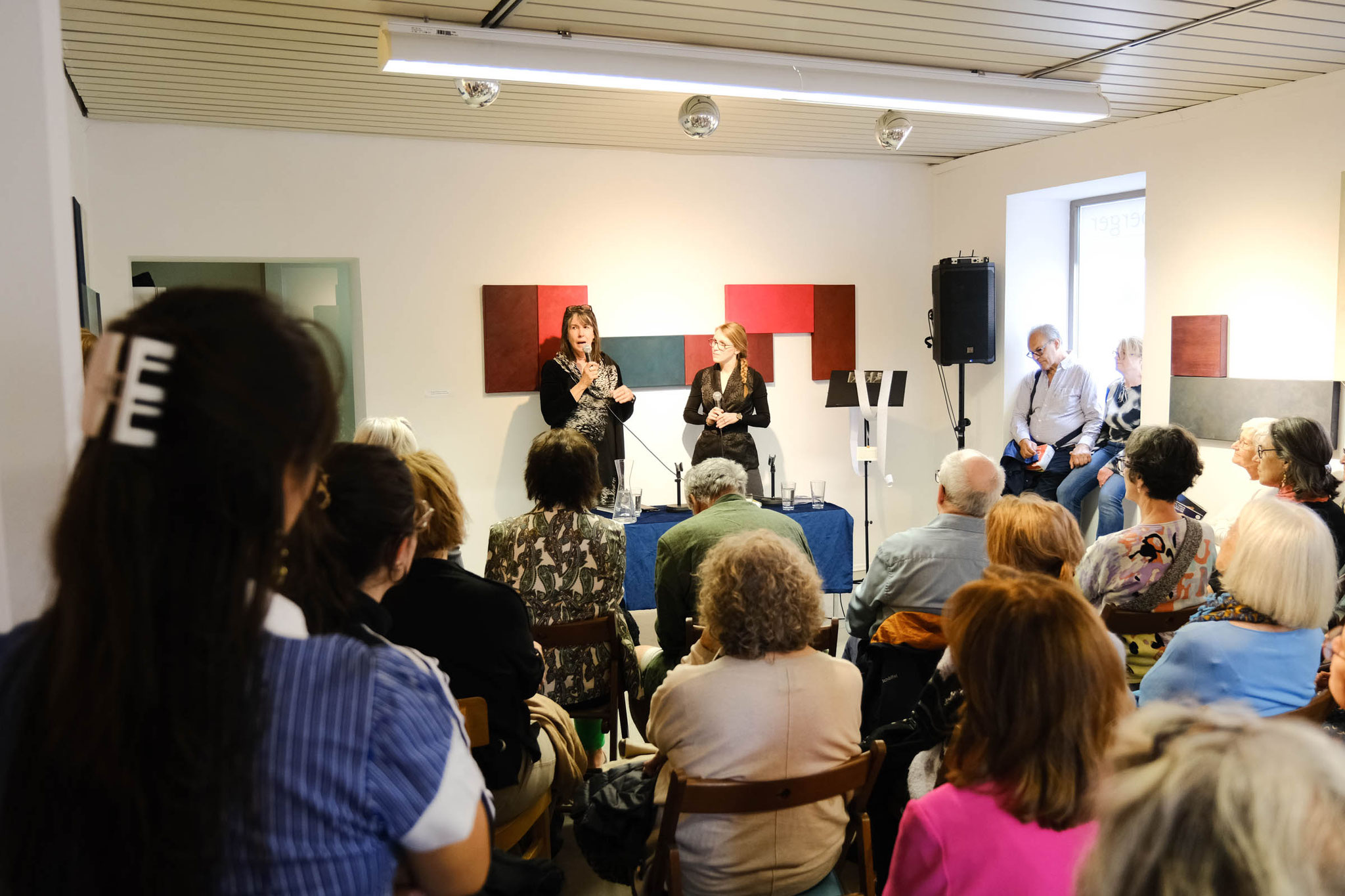 Traditionell eröffnete am Freitag eine Tiroler Autorin das Festival. In ihrem Gedichtband «Das zweite Gesicht» tritt Erika Wimmer Mazohl mit niemand geringerem als Dante Alighieri in Dialog. Das große Interesse an der Arbeit von Wimmer Mazohl zeigte sich auch im sonntäglichen Clubgespräch in der Galerie dia:log, wo das Publikum gemeinsam mit dem SPRACHSALZ-Team jede noch verfügbare Sitzgelegenheit hinauf in den ersten Stock zum Lesetisch trug.
